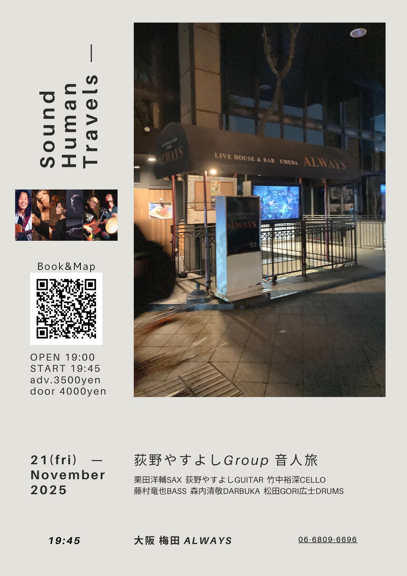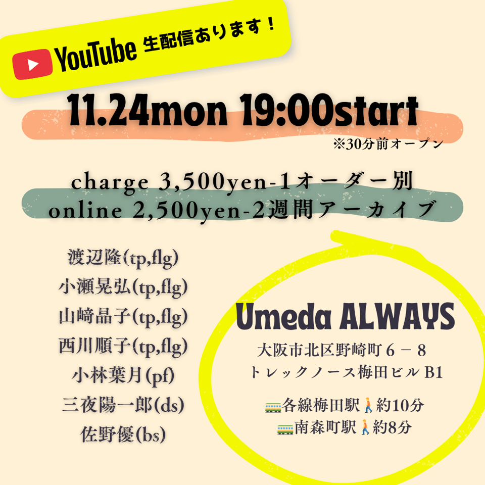 横尾昌二郎(tp)藪下ガク(g)澤田浩輔(b)齋藤洋平(ds)guest 杉山悟史(keys)