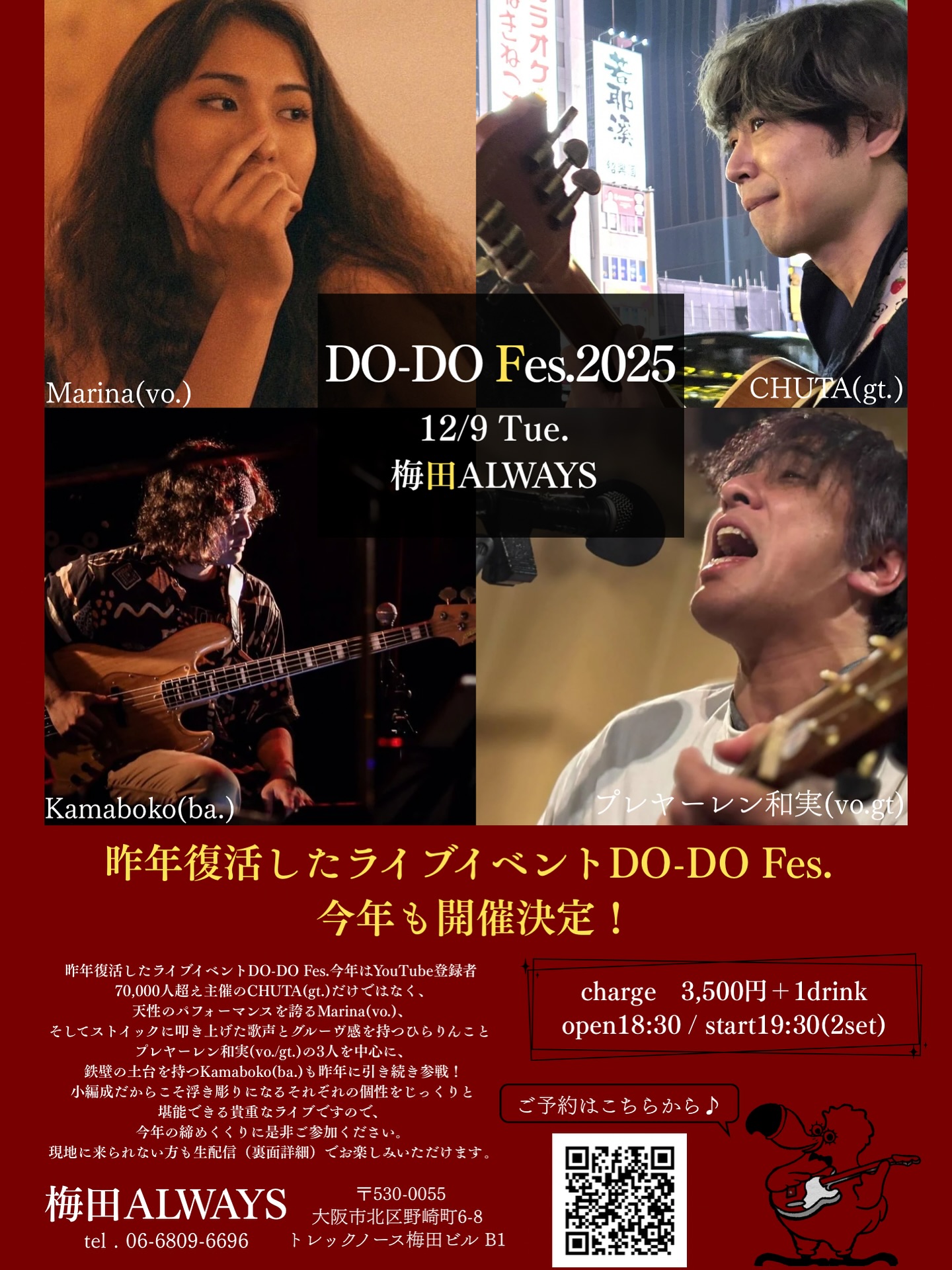 Charge 前売り・予約¥4500 当日¥5000 |