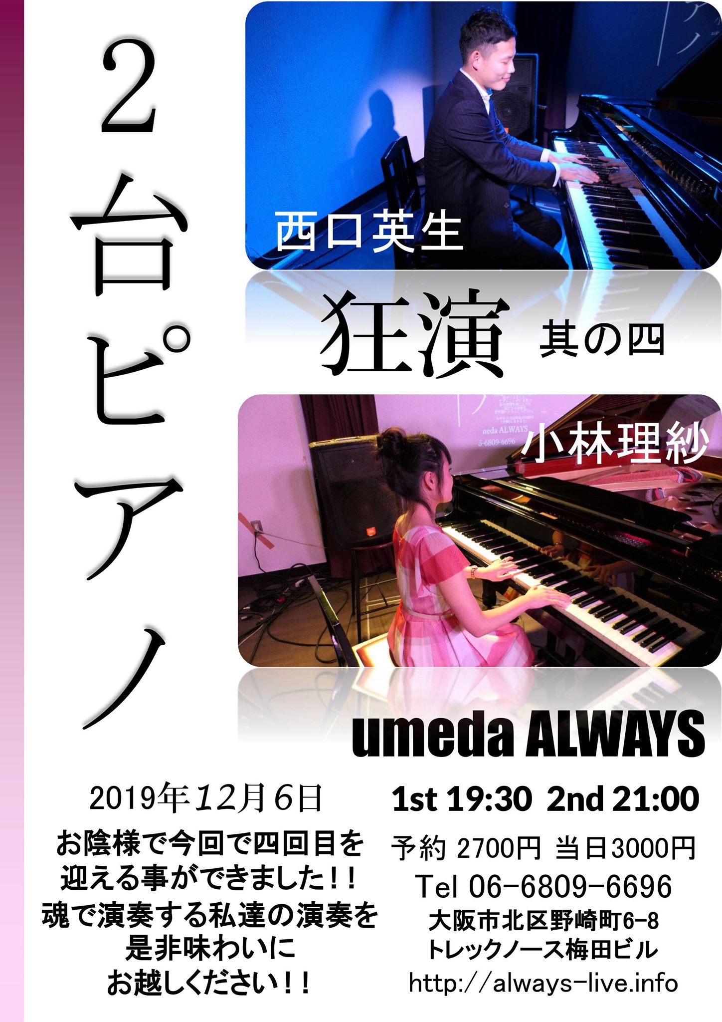 千野秀一×照内央晴 2台のグランドピアノによる即興演奏@梅田Always