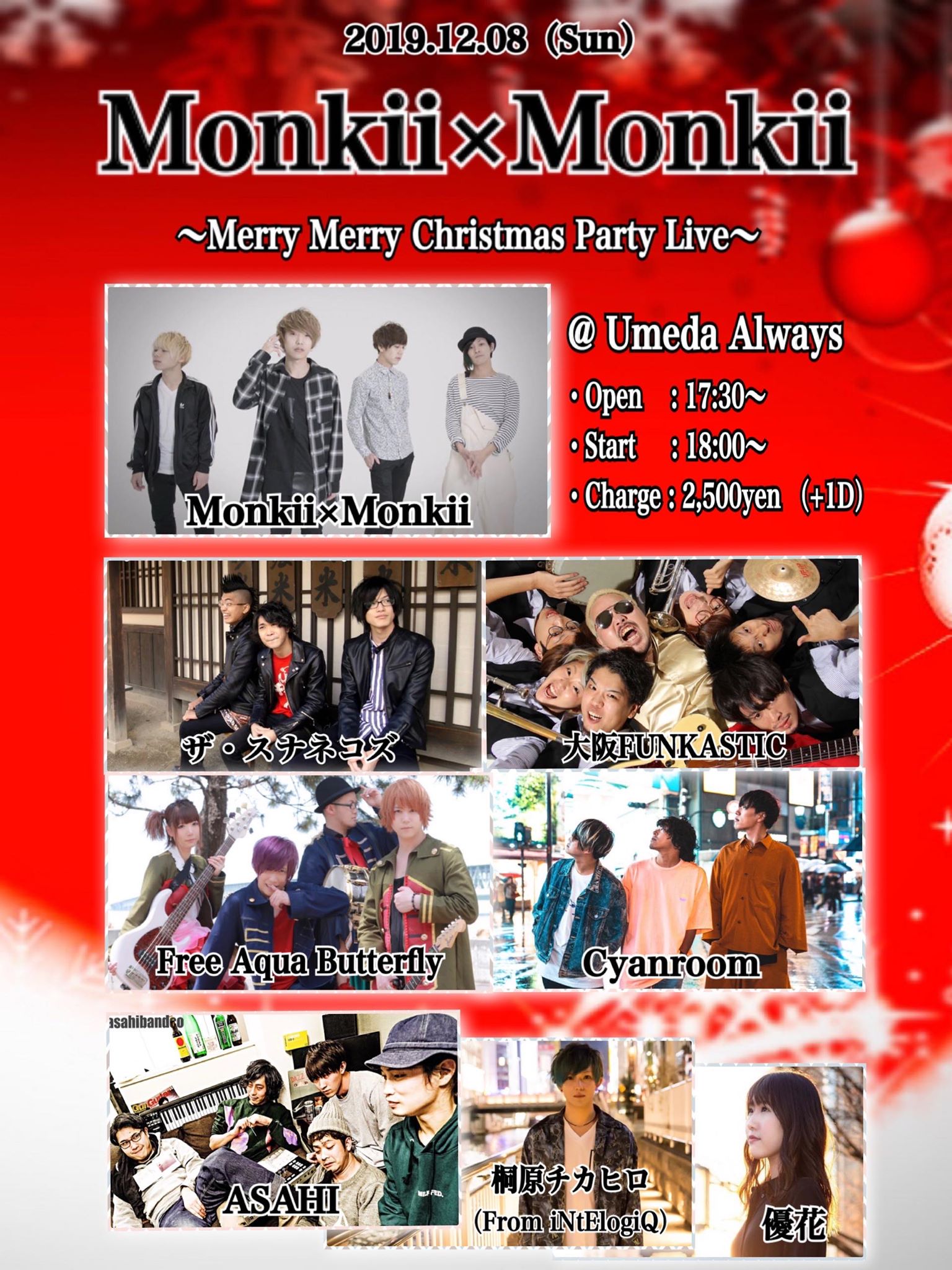 ACT/Monkii×Monkii/ザ・スナネコズ/大阪FUNKASTIC/Free Aqua Butterfly/Cyanroom/ASAHI/桐原/優花