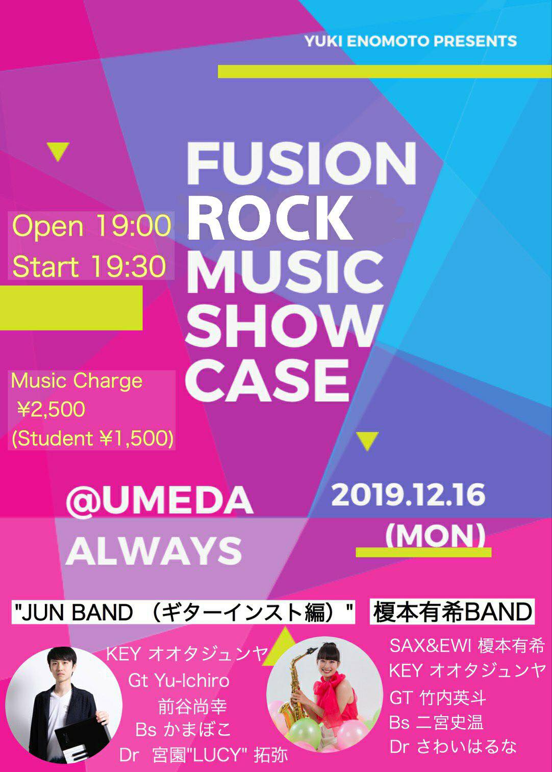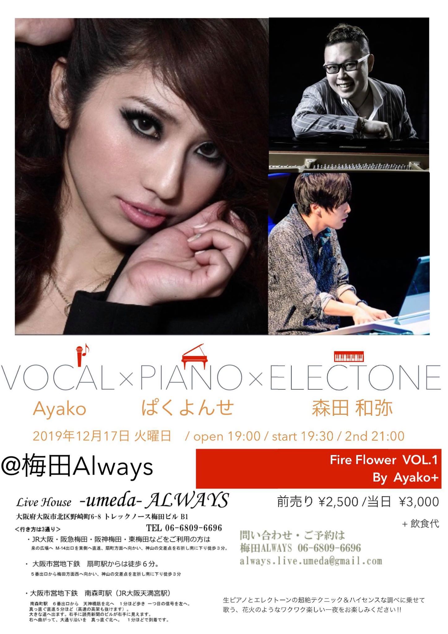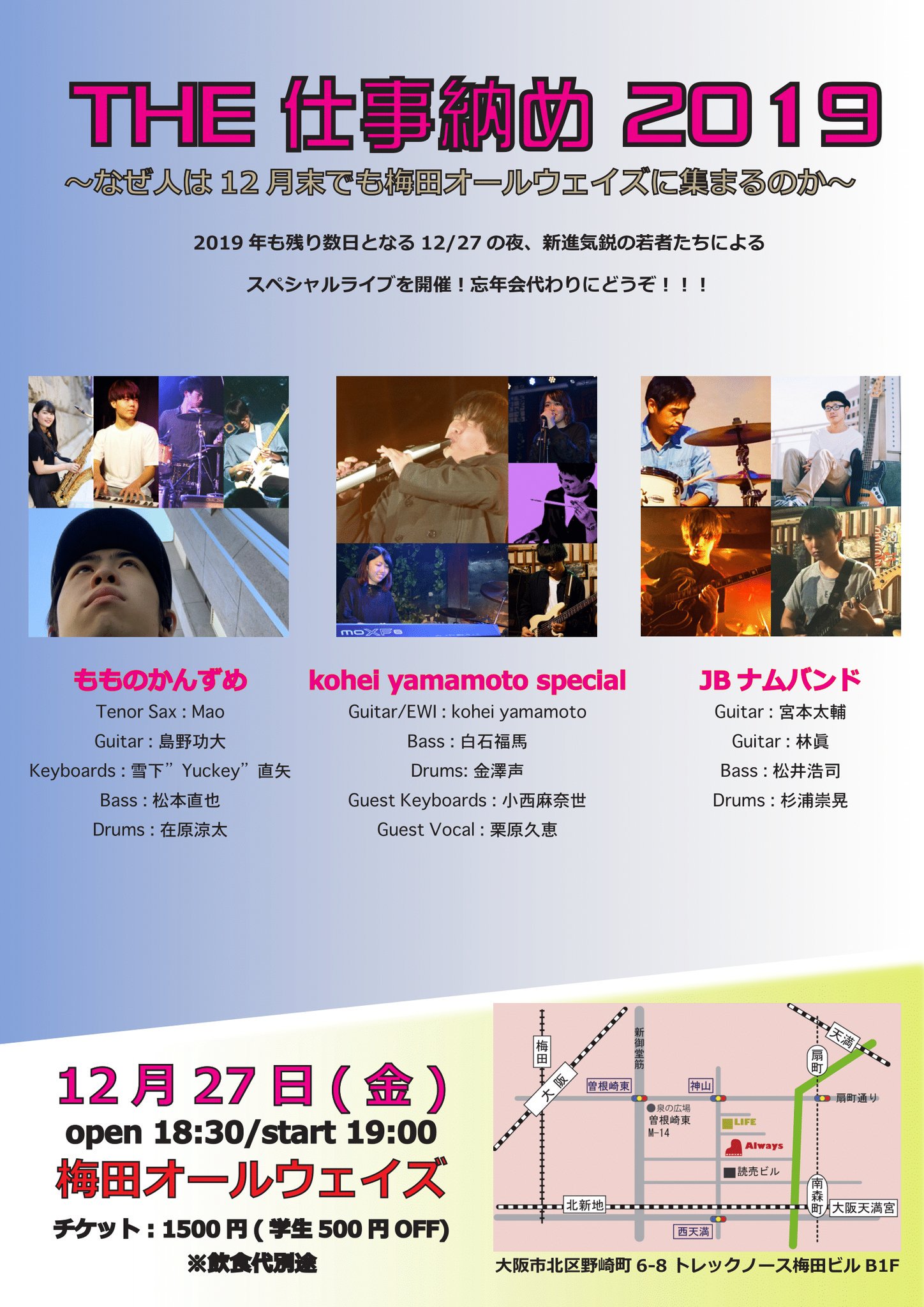 Charge 予約¥2500 当日¥3000 学生¥1000