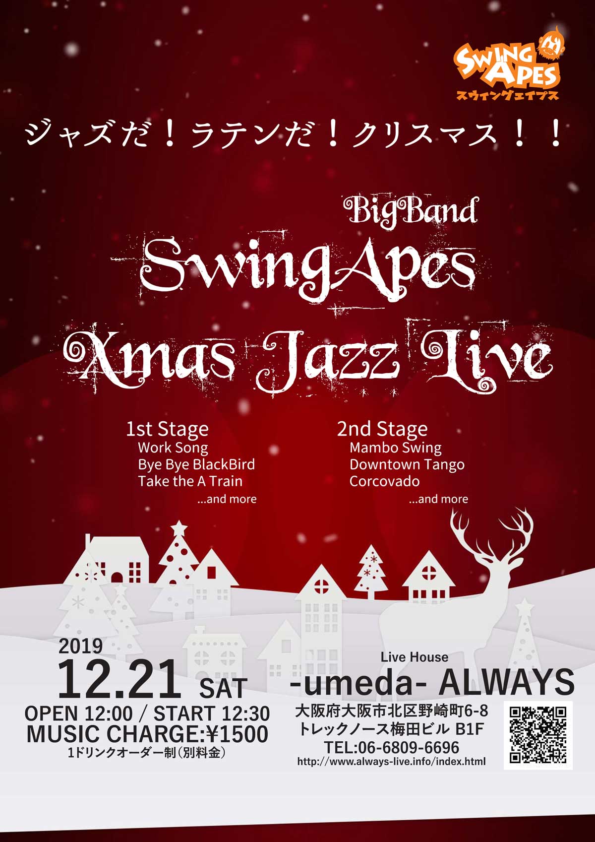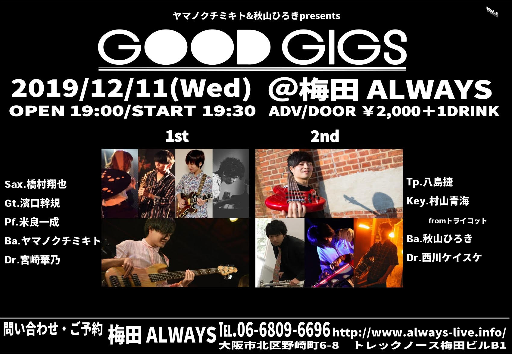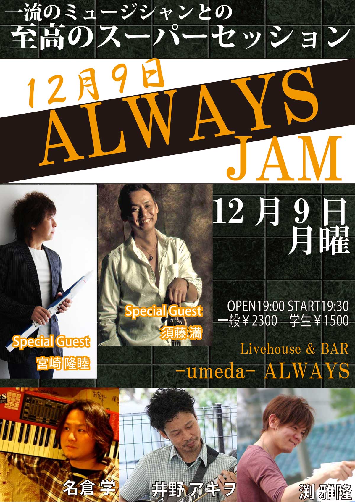 Charge 予約¥2500 当日¥3000 学生¥1000
