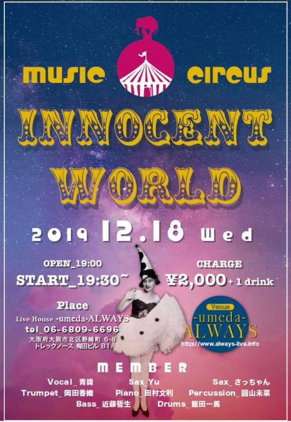 Charge 前売り・予約¥4000 当日¥4500