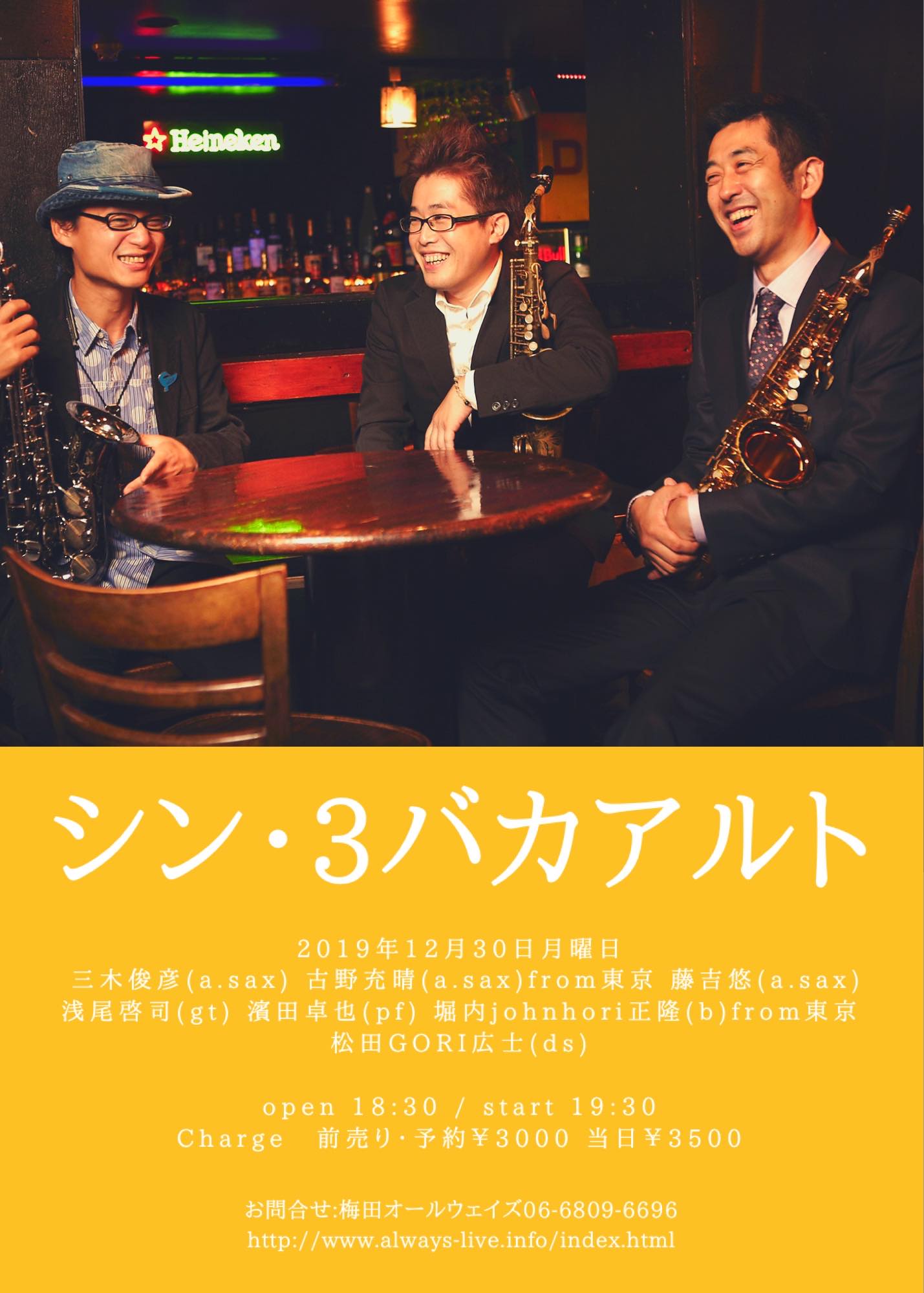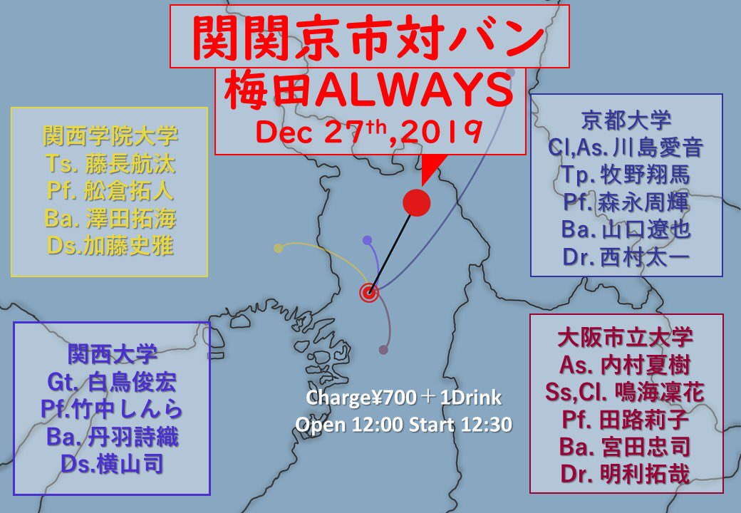 酒井康充(sax) 藤野恒二(gt) 大嶺泰史(ba) 上田高史(ds)
