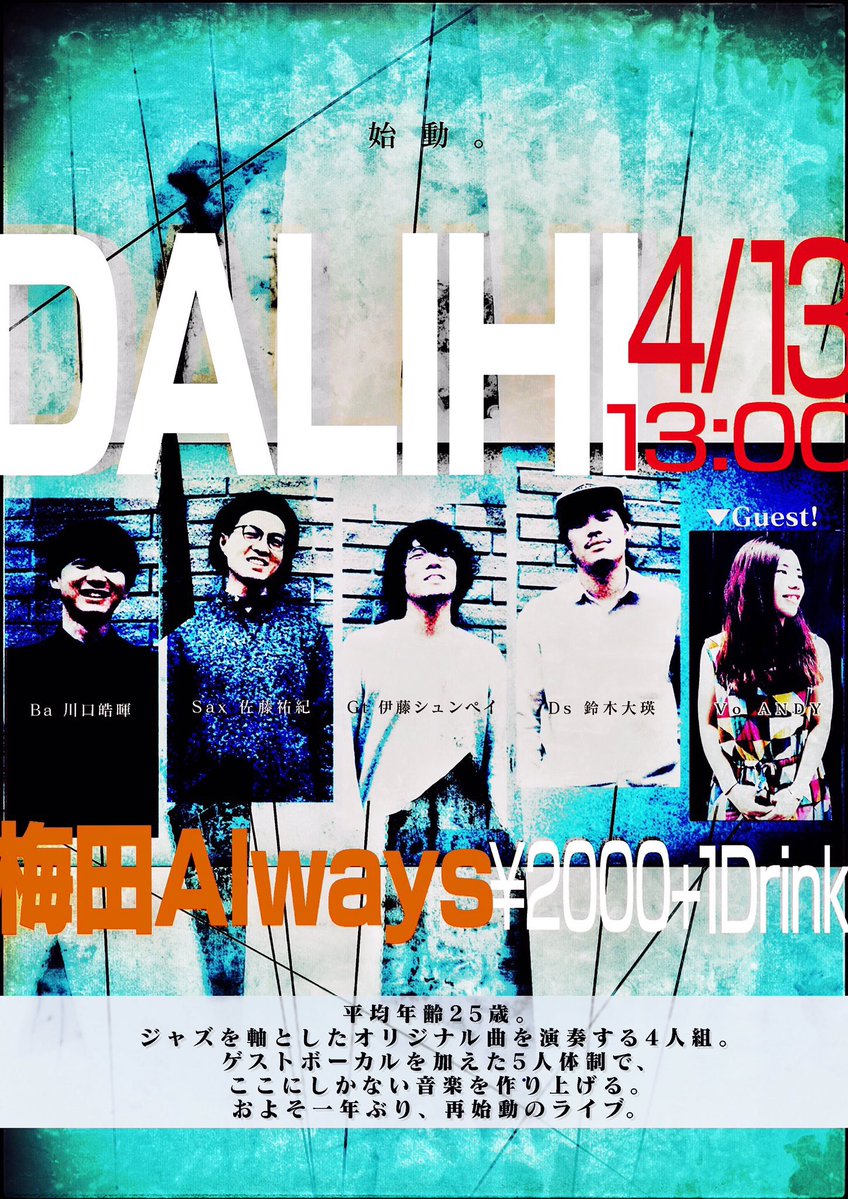 Kenichi Tajima (vo) Saori kinoh(vo) Yu Fujiyoshi(sax) Yuki Yanagi(ds)