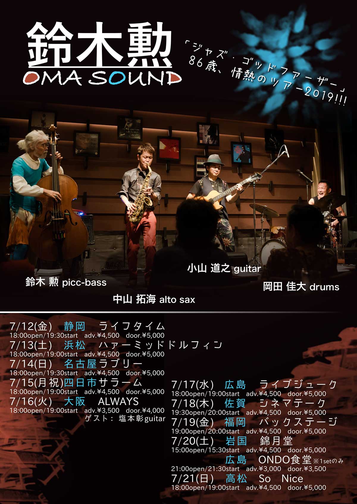當村邦明(sax) 白石栄利(tb) 荻野やすよし(gt) 定岡弘将(ds)
