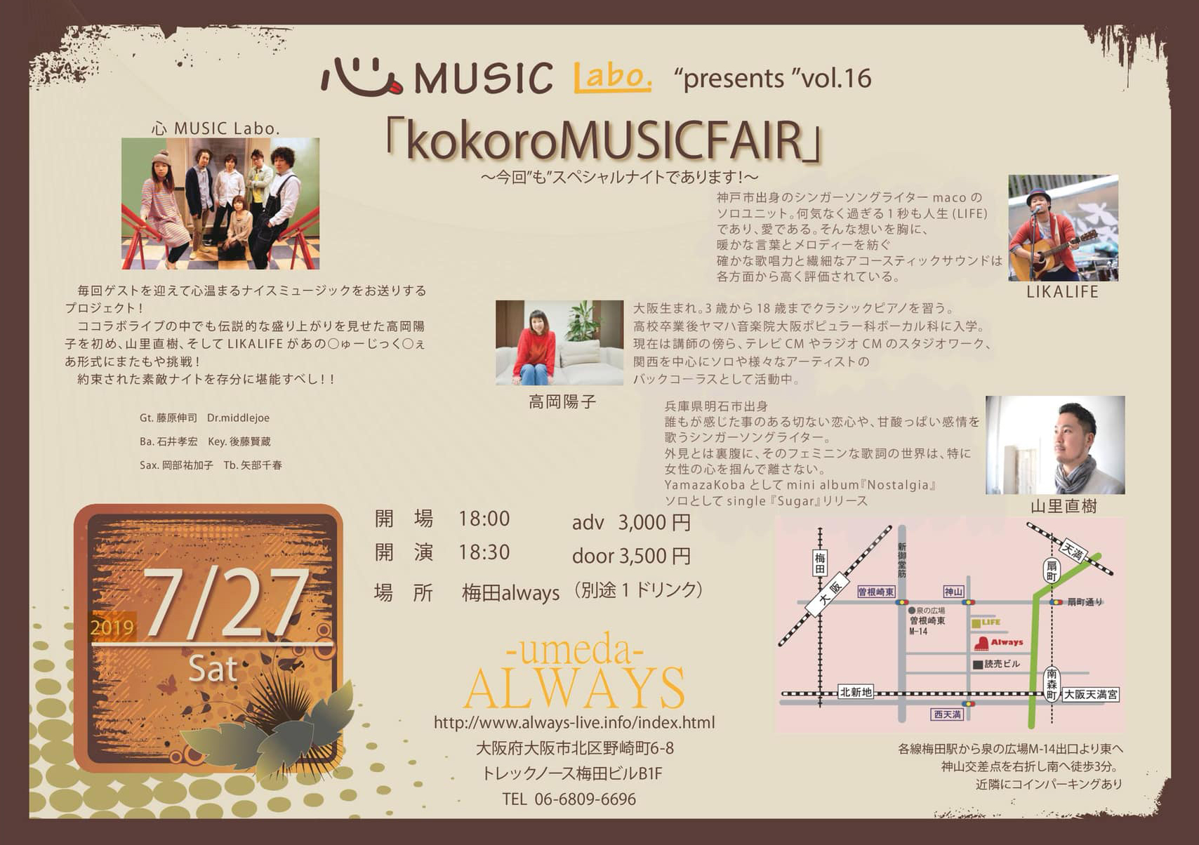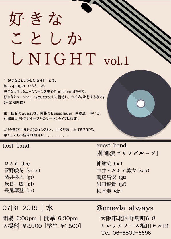 Charge 前売り・予約¥3000 当日¥3500